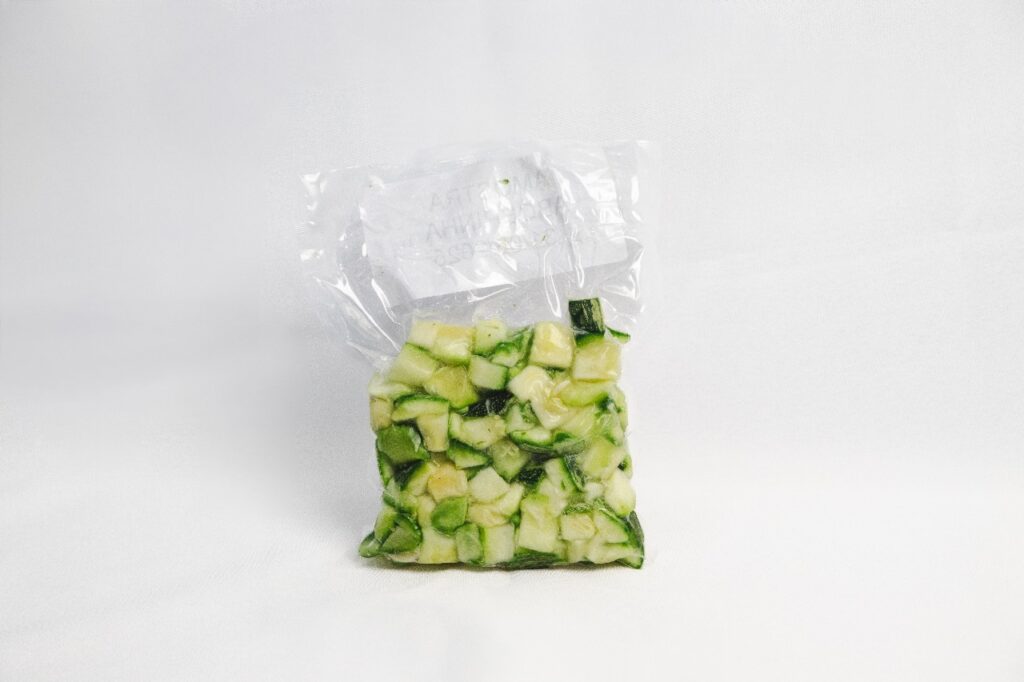 A abobrinha em cubos de 20mm oferece a combinação perfeita de textura e praticidade.