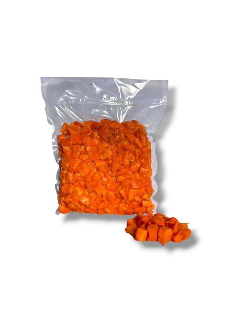 A Cenoura em Cubos 10mm é cortada em pedaços padronizados, garantindo cozimento uniforme e praticidade no preparo. Com cor vibrante e sabor levemente adocicado, é ideal para saladas, sopas, refogados e acompanhamentos.