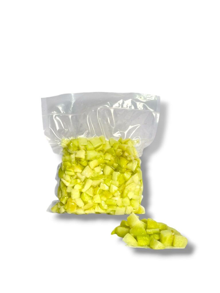 O Chuchu em Cubos 20mm é cuidadosamente cortado em pedaços padronizados de aproximadamente 2 cm, garantindo uniformidade no cozimento e uma apresentação bonita ao prato. Com textura macia e sabor suave, é ideal para sopas, refogados, saladas e acompanhamentos. Prático e pronto para uso, facilita o preparo e mantém a qualidade e o frescor do chuchu natural.