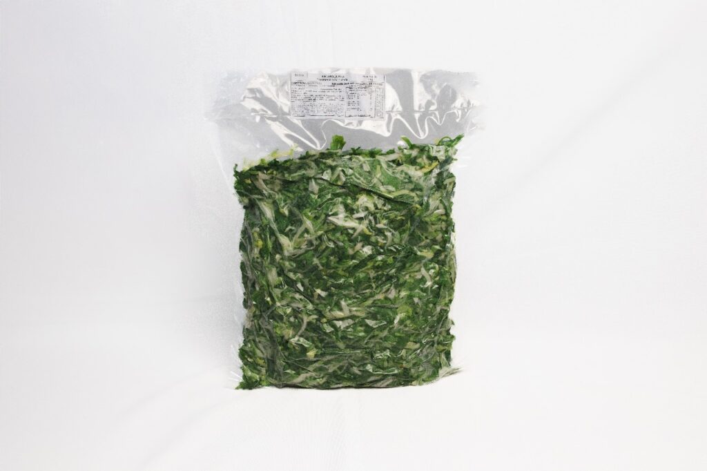 Este corte garante tiras longas e delicadas, ideais para preparos onde a folha precisa cozinhar rapidamente ou ser usada crua em saladas.